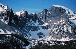 大盆地国家公园位于内华达东中部,Baker城以西五英里。这个多样化的沙漠地区内有13,063英尺高的惠勒峰(Wheeler Peek)、美丽的利曼山洞和长在冰碛上的五千年的狐尾松。此地区相对湿度低,早晚温差大,由惠勒峰到谷底之间存在着两千四百米的气候变化,晚春和早夏季节,山谷内的白天会很热,而高海拔地区的积雪却还未融化。