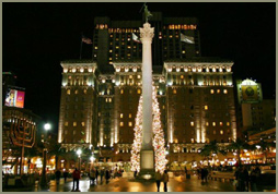联合广场是旧金山繁华的购物、酒店和剧院中心区,是购物休闲的好去处。坐落于这里的商店包括古董店、艺廊、美容沙龙、书店、服饰店、礼品店、家居店、珠宝店等,以及大型商场、餐厅、咖啡厅、俱乐部和酒吧。广场中央有一胜利女神青铜像柱子。这里还有一大型中央广场,带有台阶式舞台。另外,联合广场还建有全球最初的地下多层停车场。